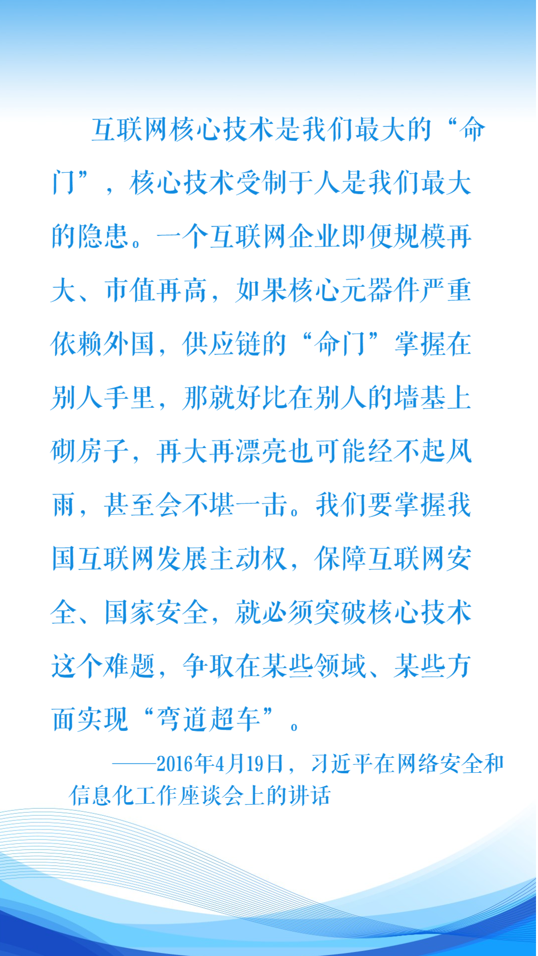 網(wǎng)信事業(yè),代表著新的生產(chǎn)力和新的發(fā)展方向。網(wǎng)信領(lǐng)域的競爭,也是不同國家數(shù)字關(guān)鍵核心技術(shù)自主創(chuàng)新能力的競爭。要在網(wǎng)絡(luò)時(shí)代保障國家安全,要推進(jìn)中國式現(xiàn)代化,就必須牽住數(shù)字關(guān)鍵核心技術(shù)自主創(chuàng)新這個(gè)“牛鼻子”,解決核心技術(shù)受制于人的隱患,提升自主創(chuàng)新能力,努力實(shí)現(xiàn)高水平科技自立自強(qiáng)。(肖聰聰)