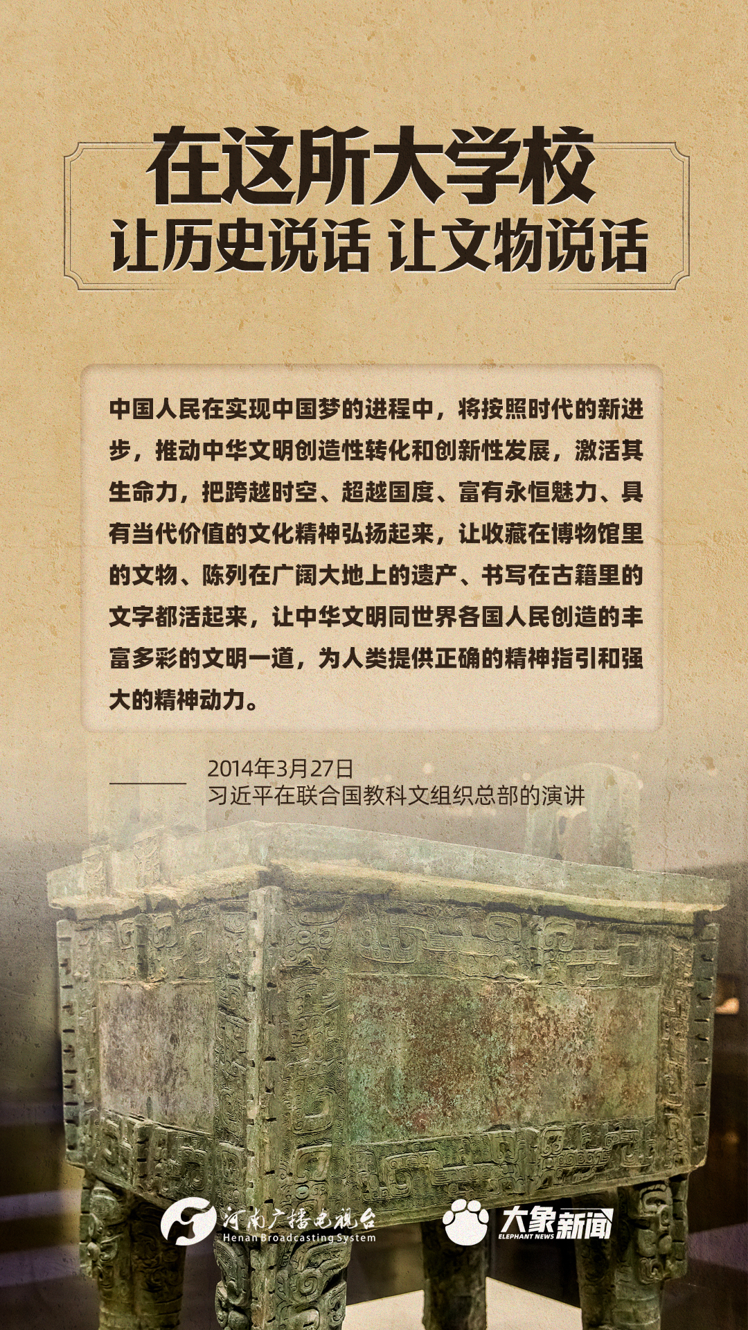 習(xí)近平總書記一直高度重視博物館工作,多次作出重要講話,強(qiáng)調(diào)“一個(gè)博物院就是一所大學(xué)?!?,指出“讓歷史說話,讓文物說話”,要求“守護(hù)好、傳承好、展示好中華文明優(yōu)秀成果”等等,金句連連。大象新聞進(jìn)行了認(rèn)真梳理,邀您一起學(xué)習(xí)。