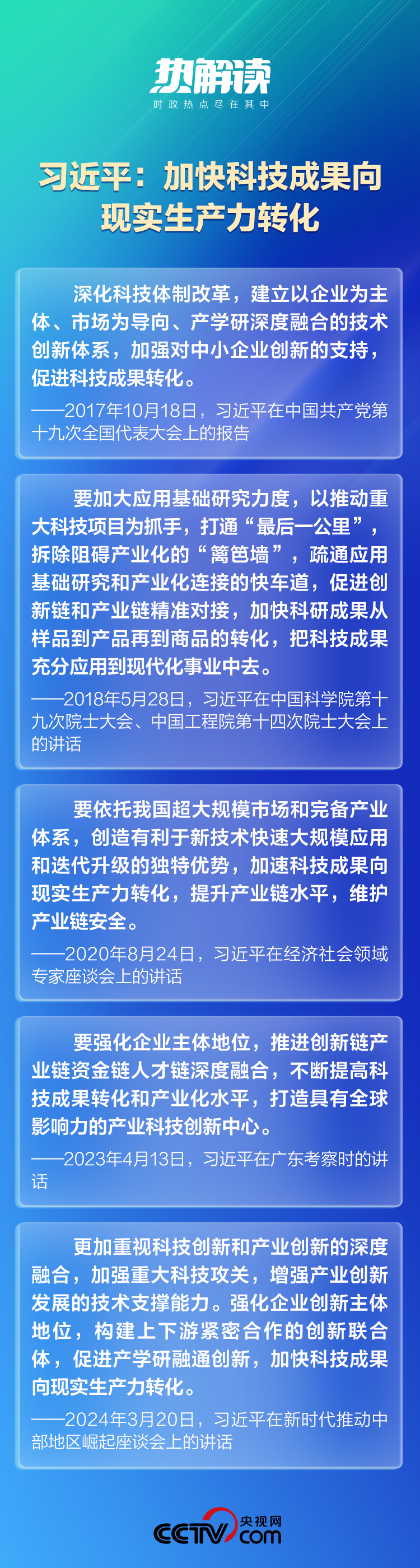 “深化科技體制改革”“圍繞產(chǎn)業(yè)鏈部署創(chuàng)新鏈、圍繞創(chuàng)新鏈完善資金鏈”“構(gòu)建上下游緊密合作的創(chuàng)新聯(lián)合體,促進(jìn)產(chǎn)學(xué)研融通創(chuàng)新”……總書記反復(fù)強(qiáng)調(diào)的,正是科技成果轉(zhuǎn)化的關(guān)鍵密鑰。