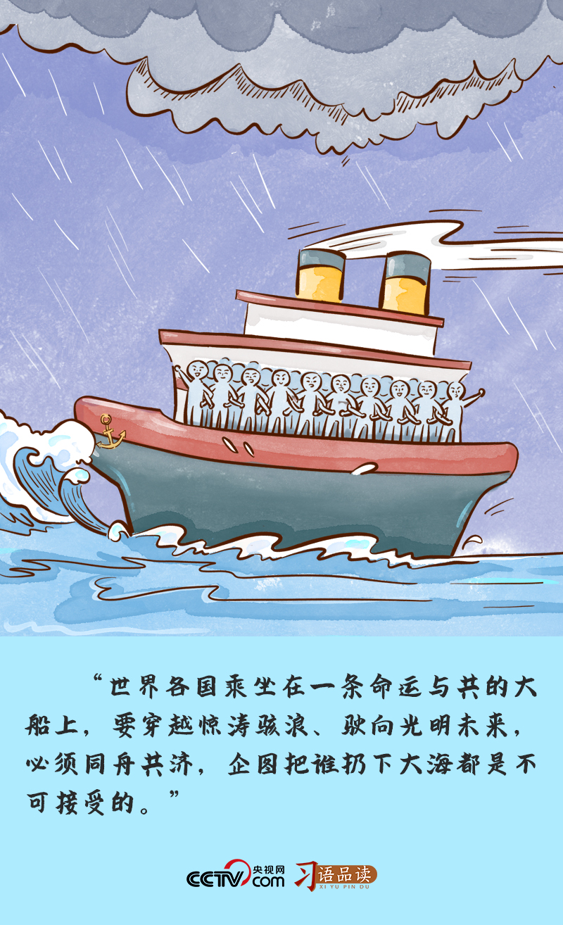 2022年1月17日,在2022年世界經(jīng)濟(jì)論壇視頻會(huì)議上,習(xí)主席深刻闡釋“小船”和“大船”的關(guān)系:“各國(guó)不是乘坐在190多條小船上,而是乘坐在一條命運(yùn)與共的大船上。小船經(jīng)不起風(fēng)浪,巨艦才能頂住驚濤駭浪?!?/p>
