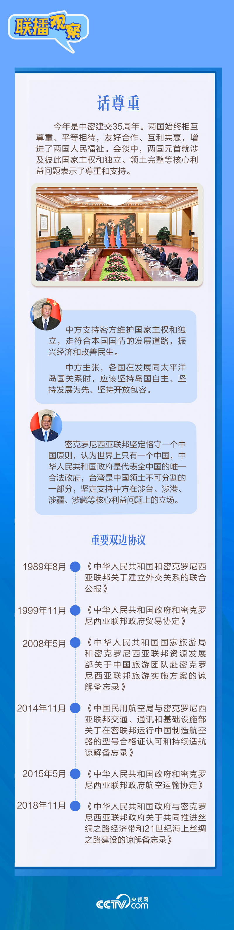 聯(lián)播+應(yīng)習(xí)近平主席邀請(qǐng),密克羅尼西亞聯(lián)邦總統(tǒng)韋斯利·西米納于4月5日至12日對(duì)中國(guó)進(jìn)行國(guó)事訪問。4月9日下午,習(xí)近平主席在北京人民大會(huì)堂同西米納總統(tǒng)舉行會(huì)談,就雙邊關(guān)系發(fā)展及共同關(guān)心的問題深入交換意見。雙方會(huì)談哪些細(xì)節(jié)值得關(guān)注?央視網(wǎng)《聯(lián)播觀察》帶您了解。