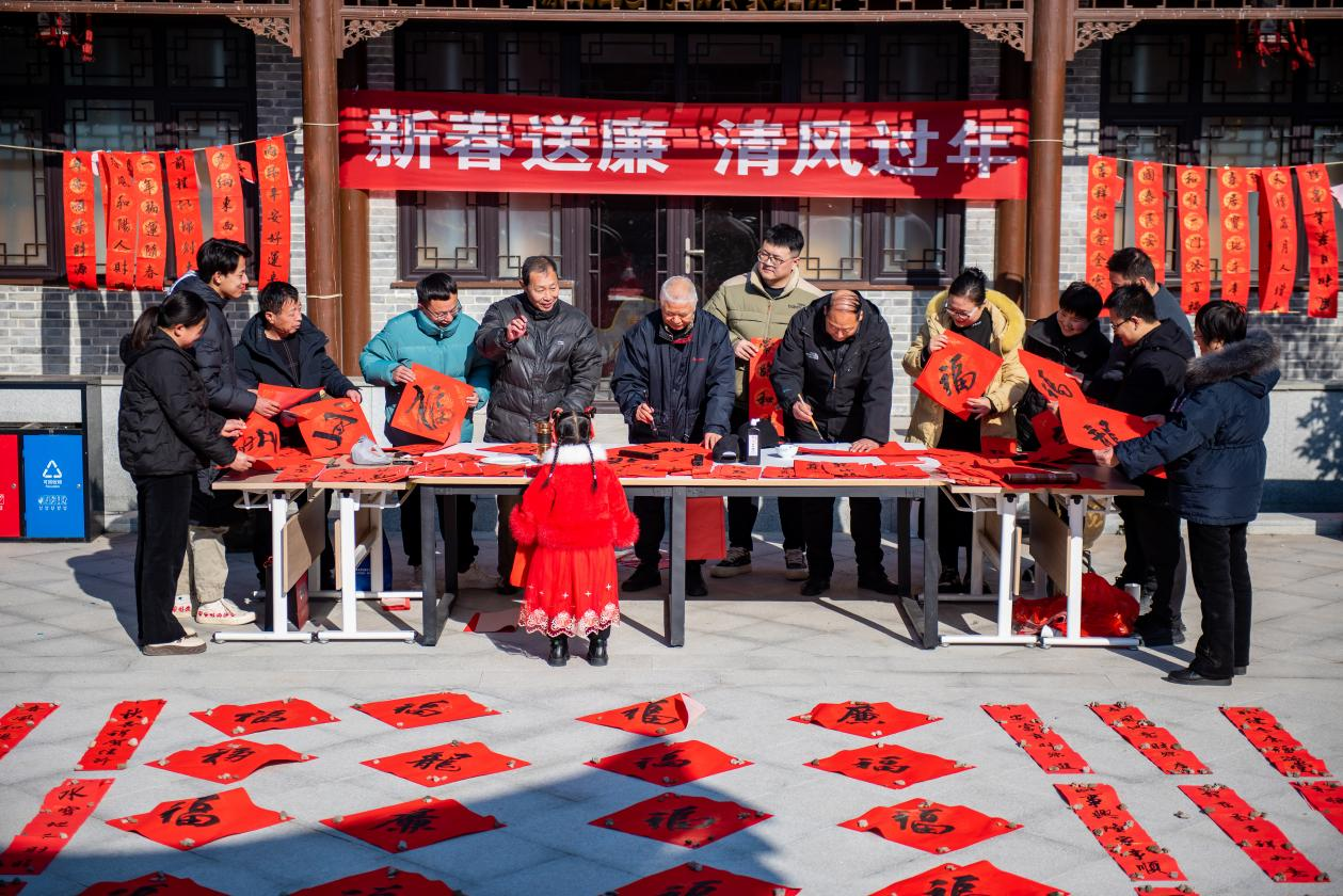 △2024年1月25日,河南省漯河市源匯區(qū)紀委監(jiān)委組織離退休干部在問十鄉(xiāng)陶橋村為群眾義寫廉潔春聯(lián)。