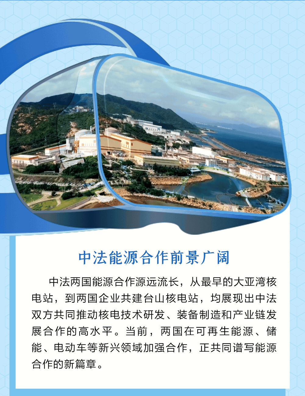 “法國是第一個同新中國正式建交的西方大國,也是最早同中國建立戰(zhàn)略伙伴關系和開展戰(zhàn)略對話、最早同中國開展民用核能合作的國家?!绷暯街飨瘡娬{(diào),中法是特殊的朋友,共贏的伙伴。