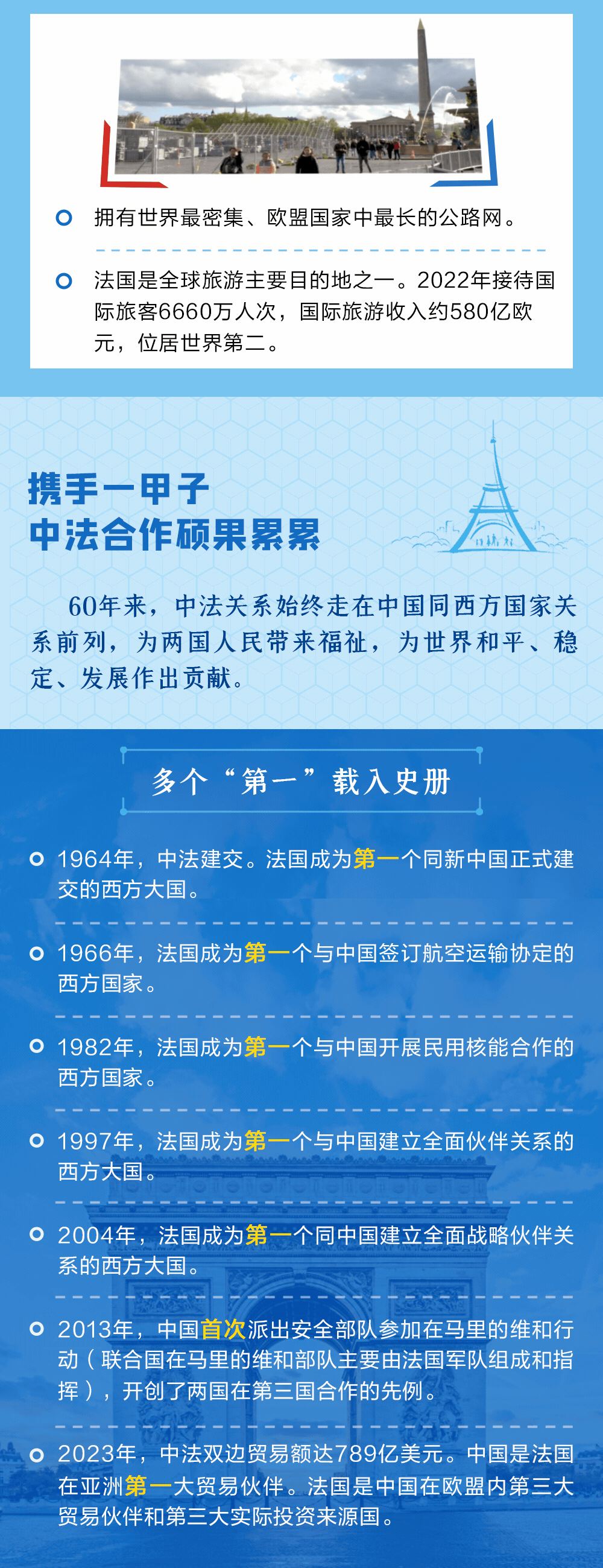 今年是中法建交60周年。60年來,秉承獨立自主、相互理解、高瞻遠矚、互利共贏的“中法精神”,兩國關系走過了一段極不尋常的歷程。央視網(wǎng)《聯(lián)播+》特推出長圖,與您一同了解。
