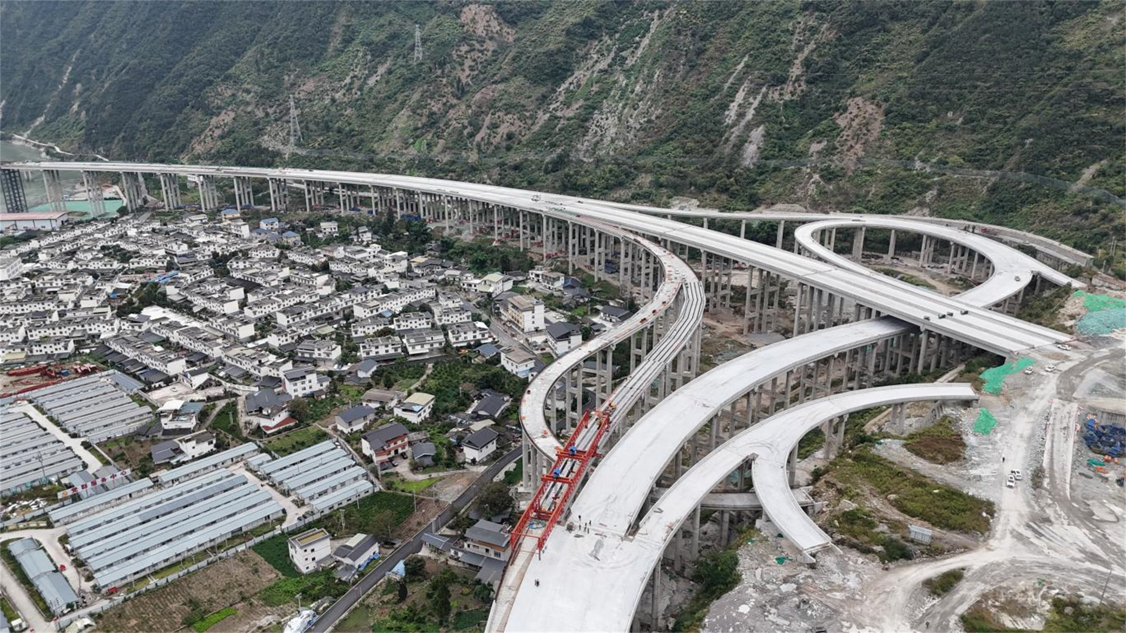 此外,海螺溝綜合體占地394畝,跨省道211施工,工程體量大,工程結(jié)構(gòu)形式復(fù)雜,上下交叉施工作業(yè)面多,加之項(xiàng)目靠近“9·5”瀘定地震核心區(qū)域,余震不斷,施工難度大,安全風(fēng)險(xiǎn)高。在項(xiàng)目建設(shè)中,需搭設(shè)高度超40多米的滿堂支架,保障9條互通立交匝道交錯(cuò)建設(shè)。面對(duì)難題,參建各方科學(xué)謀劃,對(duì)架橋機(jī)進(jìn)行改造,調(diào)整梁板架設(shè)順序,提前組織安排50多跨現(xiàn)澆箱梁的施工工序、工藝,保障了穿插在現(xiàn)澆箱梁中的預(yù)制梁板順利架設(shè)。在“9·5”瀘定地震后,項(xiàng)目在一個(gè)月內(nèi)完成全面復(fù)工復(fù)產(chǎn),并通過加大人員與設(shè)備投入,18聯(lián)共51跨現(xiàn)澆箱梁施工時(shí)間從2年縮短至1年,追回了施工工期,有力推進(jìn)了建設(shè)任務(wù)。