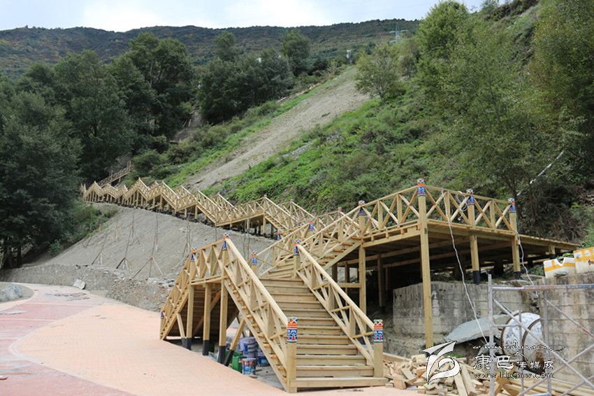 日前記者來到現(xiàn)場(chǎng),實(shí)地體驗(yàn)了在建中的爐巷·文成路。從甘孜日?qǐng)?bào)社到公主橋,一路上河堤已經(jīng)用漢白玉的石材建起了沿河欄桿,上面雕刻著吉祥八寶圖案。山路中還設(shè)計(jì)了一個(gè)較大的亭子,以這個(gè)亭子為中心,上通南無寺,下至將軍橋。一條藏式木制階梯長廊與白土坎村的阿里布果游道相連接,站在長廊的底端向上看階梯長廊,長廊就像一條在山間蜿蜒的巨龍,給爐巷·文成路添上了一抹神秘色彩。