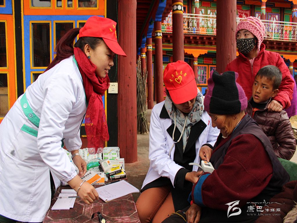 “叔叔,您有高原性心臟病,這是我們?yōu)槟鷾蕚涞撵铒L濕的藥,每天3次,每次3粒,您還要注意防寒保暖哦……”醫(yī)務(wù)人員為老人們量血壓、聽心音、問病情、送藥品。