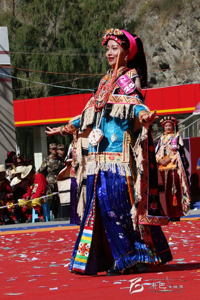 43名丹巴美女身著色彩艷麗的民族服飾緩步而來(lái),或小家碧玉,或嫵媚動(dòng)人,盡展嬌姿。