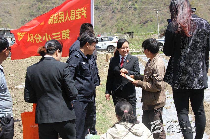 在法制宣傳進(jìn)鄉(xiāng)村活動(dòng)中,瀘定縣法院始終堅(jiān)持圍繞服務(wù)中心大局,把矛盾糾紛隱患多的移民村和群眾觀念相對(duì)落后的貧困村作為重點(diǎn)對(duì)象。利用農(nóng)閑季節(jié)、重大節(jié)慶,采取經(jīng)典案例、法制講座和發(fā)放雙語宣傳手冊等群眾喜聞樂見的形式,積極開展送法下鄉(xiāng)、以案說法和法律咨詢服務(wù),不斷提高群眾學(xué)法、守法、用法意識(shí)。