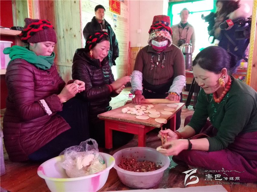 走進(jìn)江巴達(dá)吉的家里,一股熱浪撲面而來,小鋼爐上燒著熱水,幾個女人正在備料準(zhǔn)備包酥油包子和牛肉餃子。藏桌上擺滿了糖果、牛肉,豐盛的食物琳瑯滿目。江巴達(dá)吉愜意地喝著奶子茶,知足和幸福寫在臉上。