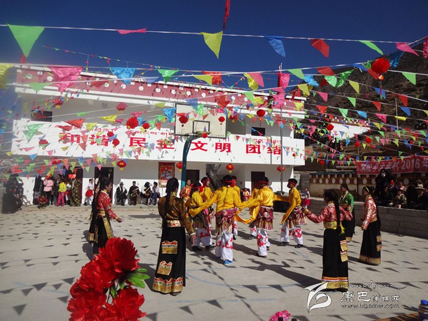 正月初八上午十點(diǎn),鄉(xiāng)城縣移民搬遷新村——太年村群眾自編自演的新年文藝節(jié)目在彩旗飄飛的村活動(dòng)室舉行,《舞動(dòng)高原》、《情滿大山》、《唱支山歌給黨聽(tīng)》、《小蘋(píng)果》等近兩個(gè)小時(shí)的歌舞節(jié)目依次亮相,一位位“草根”明星輪番登臺(tái),一個(gè)個(gè)歌頌家鄉(xiāng)新風(fēng)貌、展現(xiàn)搬遷新村新風(fēng)采的節(jié)目贏得他觀眾如潮的掌聲。村民們自編的感恩黨、贊美新生活的山歌唱了一曲又一曲,精彩的節(jié)目吸引了附近鄉(xiāng)村數(shù)百人前來(lái)觀看。