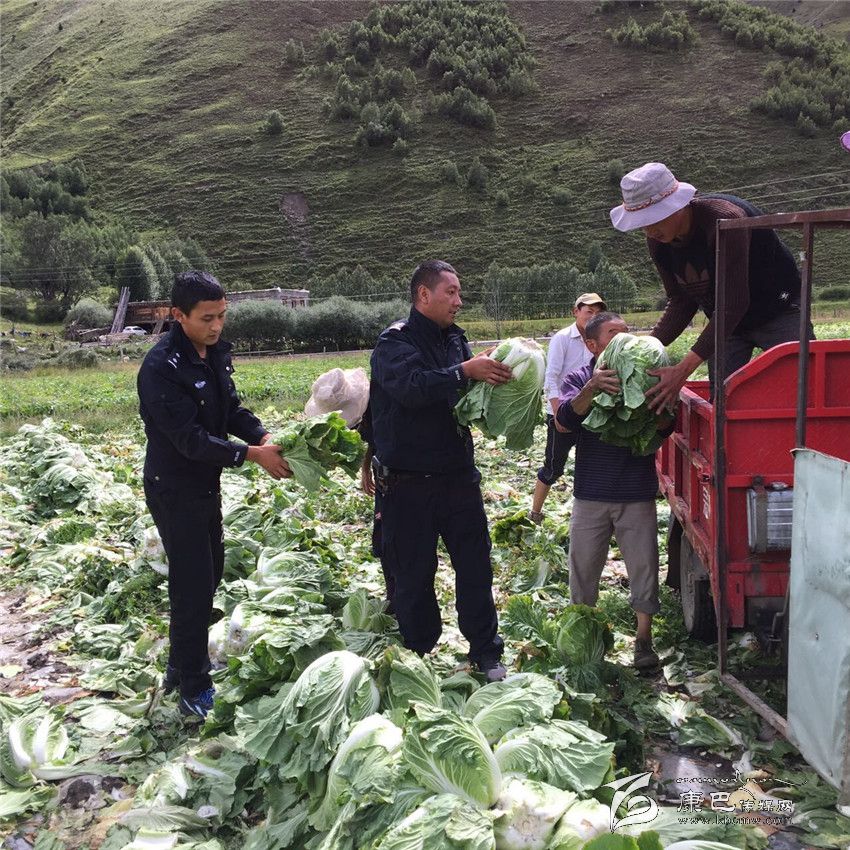 本網(wǎng)訊(記者 克珠 文/圖)連日來,康定市呷巴鄉(xiāng)派出所民警澤仁羅布和他的同事一直在幫扶貧困戶澤仁志瑪?shù)氖卟说乩锩€(gè)不停。去年,澤仁羅布在主動(dòng)與呷巴鄉(xiāng)呷巴下村貧困戶澤仁志瑪結(jié)成扶助對(duì)子后,動(dòng)員她利用村里交通便捷和土地較好集中的優(yōu)勢(shì)發(fā)展蔬菜種植。今年,澤仁羅布又邀請(qǐng)農(nóng)業(yè)技術(shù)人員到她家指導(dǎo)種植技術(shù),并免費(fèi)贈(zèng)送了白菜種子。“今年我種了10多畝白菜,一年收入大概在3萬元左右”。澤仁志瑪說。圖為澤仁羅布和同事正在搬運(yùn)蔬菜。