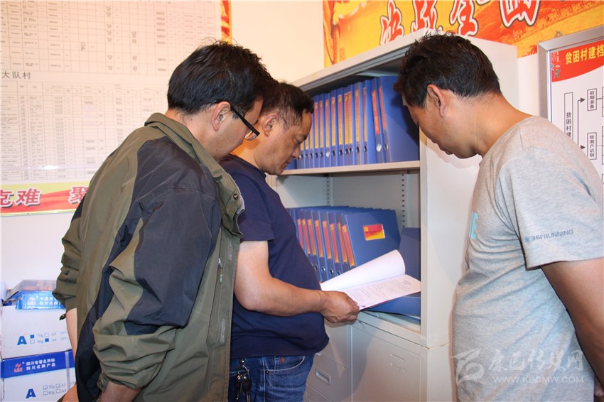 縣委副書記、縣長(zhǎng)楊國(guó)清檢查精準(zhǔn)扶貧專卷。
