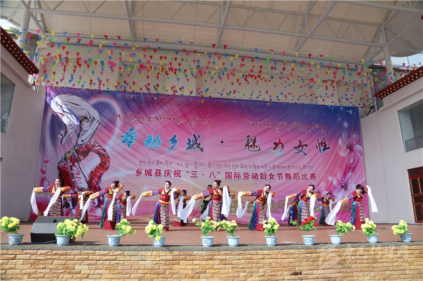本網(wǎng)訊(吳遠(yuǎn)勝文/圖)3月7日,鄉(xiāng)城縣舉辦了“舞動(dòng)鄉(xiāng)城·魅力女性”慶?!叭恕眿D女節(jié)舞蹈比賽。活動(dòng)中,廣大婦女身著民族服裝,隨著優(yōu)美的旋律載歌載舞?!栋⒗共寄贰贰栋尷病贰跺伹f聲聲》等14個(gè)精彩紛呈的歌舞節(jié)目,贏得了現(xiàn)場(chǎng)觀眾的喝彩和掌聲。圖為舞蹈比賽現(xiàn)場(chǎng)。