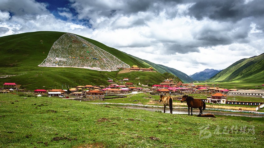 龍燈大草原位于四川省甘孜州道孚縣龍燈鄉(xiāng)境內(nèi),分布于川藏公路兩側(cè),赫赫有名的格薩爾王曾在此安營扎寨,因而被當(dāng)?shù)厝朔Q為“格薩爾通”。牧場(chǎng)坦蕩如砥,每年要改變十二次顏色,每一次改變都令人心醉,美艷無比。
