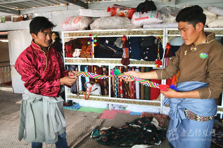 安孜鄉(xiāng)作為白玉縣海拔較高的鄉(xiāng)鎮(zhèn)之一,夏天是十分短暫的,連日來(lái)的晴好天氣,也透著絲絲寒氣。牧民阿剛想要量身定做一套過(guò)冬的藏裝,8月26日,他來(lái)到白玉縣阿察鎮(zhèn),一家民族服飾商貿(mào)公司吸引了他的目光?!拔覀冞@里的服裝面料是本地羊毛和從浙江進(jìn)的上等面料,做工考究,很多工序是純手工制作,服裝樣式你可以根據(jù)你的喜好指定,我們包你滿意。”店員仁真熱情地介紹。聽(tīng)了仁真的介紹,阿剛用手捻了一下服裝用料的質(zhì)地,看到印有“祥陽(yáng)措”商標(biāo)的精美包裝袋,商店里擺放的五彩斑斕、高端大氣的藏式男女服裝,他有些動(dòng)心了?!吧a(chǎn)這些服裝的都是我們納塔鄉(xiāng)的牧民,你可以考察我們的服裝用料、生產(chǎn)流程,再作打算?!比收鏌崆檠笠绲亟榻B說(shuō)。