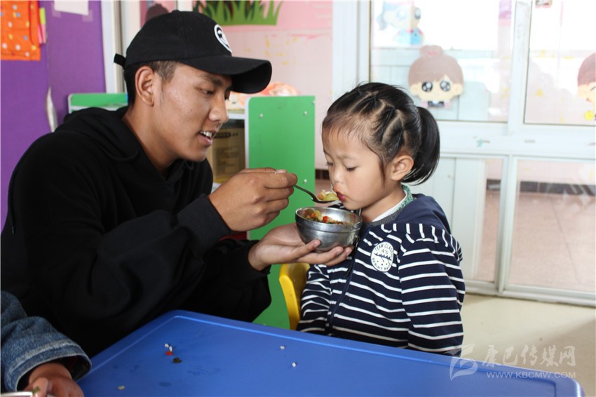 巴蘇給小朋友喂飯。