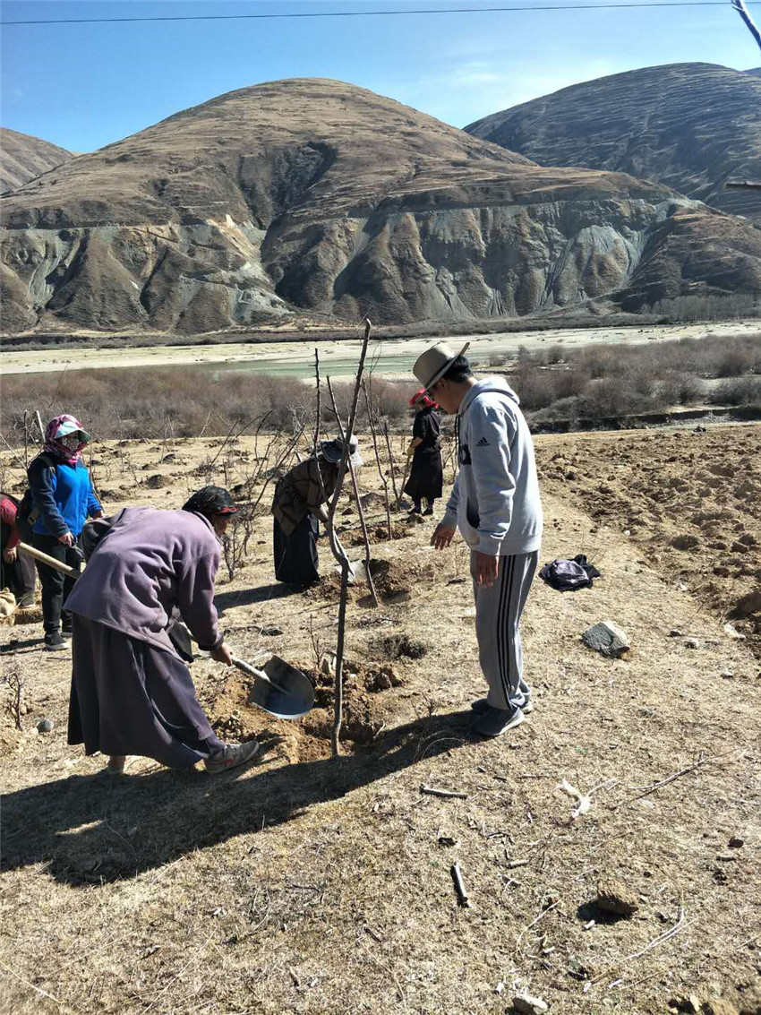 4月,正是高原植樹栽花的好時(shí)節(jié),溫暖的陽光把鮮水河兩岸照耀得一片金黃,斯木鎮(zhèn)俄米村的30多位村民在早晨的陽光下熱火朝天地栽著種根徑超過0.05米的5年樹齡、高達(dá)2米的杏樹,有人用鋤頭清坑,有人用鐵鏟培土,有人躬身用臉盆澆水,從青海移栽到爐霍的杏樹,將在明年的今天為爐霍帶來杏花的海洋。