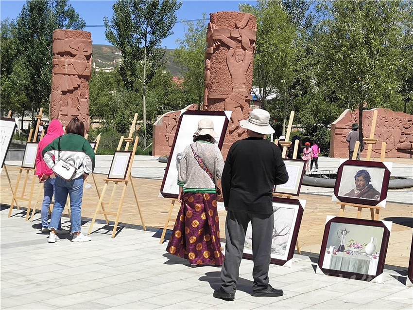 文藝展得到了廣大藝術(shù)愛好者的積極響應(yīng)、參與和支持,共征集到精美作品189件展出,其中書法作品60件、繪畫作品69件、唐卡作品60件。作品內(nèi)容廣泛、立意新穎、主題突出,既有藝術(shù)性又有紀(jì)實性,富有感染力和表現(xiàn)力。