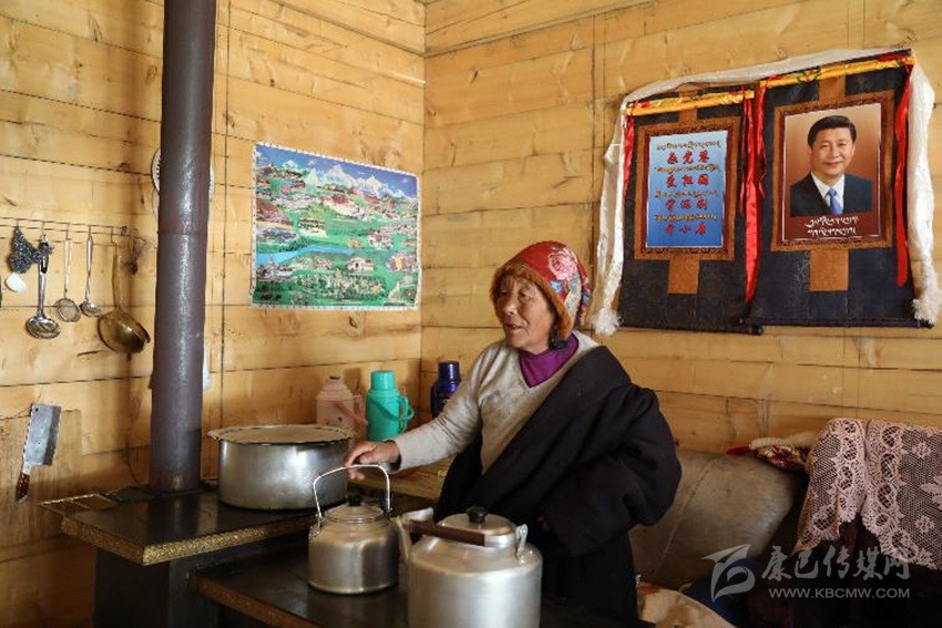 “我是村上第一個(gè)掛習(xí)主席唐卡畫(huà)像的脫貧戶!這幅黑白唐卡是我入住新房當(dāng)天掛的;幾天后,畫(huà)師又送我一幅彩色的,于是我就把這兩幅唐卡并排掛在客廳里。如今,全村家家戶戶都在客廳里掛上了習(xí)主席彩色唐卡。要是沒(méi)有習(xí)主席提出實(shí)施精準(zhǔn)扶貧,恐怕我們現(xiàn)在還住在山上受窮!”11月28日上午,當(dāng)筆者來(lái)到距德格縣城37公里的龔埡鄉(xiāng)雨托村采訪時(shí),77歲的建檔立卡貧困戶呷瑪西繞指著習(xí)主席唐卡畫(huà)像激動(dòng)地說(shuō)。