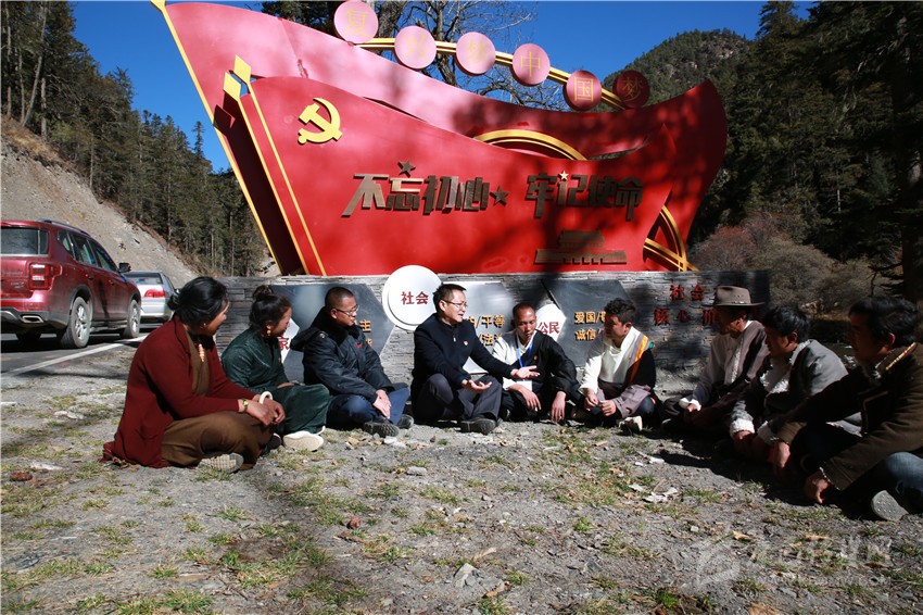 11月20日,記者乘坐的采訪車從稻城亞丁景區(qū)入口方向拐了個(gè)彎,沿著平坦的柏油路前行了26公里,木拉鄉(xiāng)麻格同村便映入眼簾,一塊黨旗造型的文化墻上寫著“不忘初心、牢記使命”幾個(gè)大字,墻體下方刻有社會(huì)主義核心價(jià)值觀內(nèi)容,讓人眼前一亮。幾個(gè)村民圍坐在一起,商量著什么。記者停車詢問(wèn)得知,四川旅投集團(tuán)駐村干部王雷正在和村“兩委”以及部分村民代表,商議動(dòng)工修建棧道,為游客開展馬幫服務(wù)的事情。