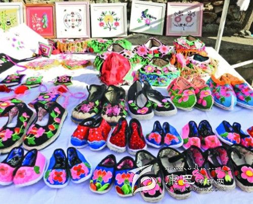 嵐安刺繡是瀘定的民族特色刺繡產(chǎn)品,是傳統(tǒng)民族純手工藝品,由于繡品一直被當(dāng)?shù)厝罕娮援a(chǎn)自用,一直沒有走向市場,為幫助嵐安鄉(xiāng)傳承傳統(tǒng)文化,讓?shí)拱泊汤C找到銷路,取得經(jīng)濟(jì)收益,該縣婦聯(lián)利用舉辦第四屆紅櫻桃節(jié)的時機(jī),為刺繡產(chǎn)品牽線搭橋,將嵐安婦女刺繡作品納入到“三項建設(shè)促發(fā)展瀘定鄉(xiāng)村換新顏”成果展銷中,以提升刺繡作品的知名度。圖為參展的嵐安繡品。