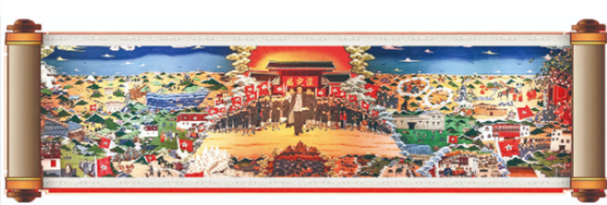 長(zhǎng)6.45米、寬1.65米的畫布上,近大遠(yuǎn)小的透視與明暗關(guān)系的變化交織,旖旎同嵯峨并現(xiàn),栩栩如生地將80多年前發(fā)生在這片甘孜高原的紅軍長(zhǎng)征史詩圖景完整還原:“飛奪瀘定橋”“朱德總司令與格達(dá)活佛的深厚情誼”“甘孜勝利會(huì)師”……16個(gè)組圖場(chǎng)景、32個(gè)故事片段、1415個(gè)人物形象,經(jīng)過爐霍20名郎卡杰唐卡畫師600多個(gè)日夜繪制,一幅用非遺技藝弘揚(yáng)紅色精神的巨幅唐卡《紅星照耀雪域》震撼完成。《紅星照耀雪域》將“紅軍長(zhǎng)征在甘孜”的歷史事件,在國(guó)家級(jí)非遺代表性項(xiàng)目郎卡杰畫派唐卡的描繪下“躍然紙上”,生動(dòng)形象地展示出甘孜大地上各民族共同團(tuán)結(jié)奮斗的軍民魚水情。