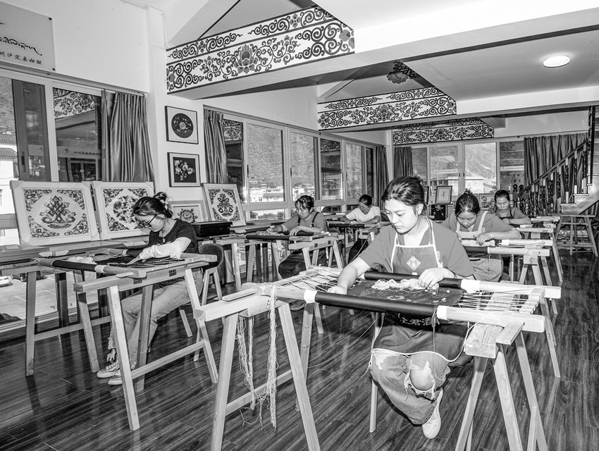 據(jù)烹壩鎮(zhèn)副鎮(zhèn)長(zhǎng)王昇介紹,2018年在省州縣婦聯(lián)的大力支持和幫助下,烹壩鎮(zhèn)成立了“指尖藏花貴瓊刺繡”合作社,150余名婦女加入到合作社,參與刺繡。自從成立了合作社,村里的婦女們背著娃,繡著花,養(yǎng)活自己,養(yǎng)活全家。“指尖藏花貴瓊刺繡”合作社的“貴瓊藏繡”已成為烹壩鎮(zhèn)婦女增收的好項(xiàng)目。婦女們有事做了,干群關(guān)系也更加緊密,老百姓遇到問題也更加愿意找黨員、找干部。同時(shí)“貴瓊藏繡”這種康巴地區(qū)特有的非遺傳承技藝也得到了很好傳承和發(fā)揚(yáng)。