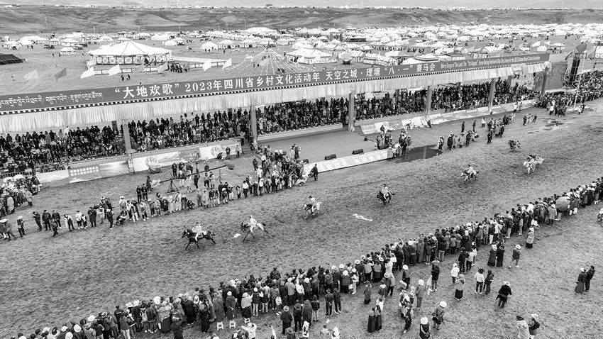 “中國藏族賽馬文化之鄉(xiāng)”“理塘八一傳統(tǒng)賽馬會”是四川涉藏州縣規(guī)模最大的賽馬會,賽馬傳統(tǒng)延續(xù)長達(dá)400余年。“早就聽說過馬背上的理塘,今天終于親眼所見,實在不虛此行。草原追風(fēng),策馬飛奔,蹄聲如雷,震徹山野,這是多么壯美的理塘萬馬奔騰圖啊!多想遠(yuǎn)離城市的喧囂,策馬揚鞭,馳騁草原,豪邁瀟灑,勇往直前。以后每一年的理塘賽馬活動,我一定會帶上家人再來這里,因為理塘,可謂是心靈棲息的地方。”在“大地歡歌”2023年四川省鄉(xiāng)村文化活動年——天空之城·理塘“八·一”賽馬會上,來自北京的游客石磊被當(dāng)?shù)刭愸R文化吸引,和朋友玩得不亦樂乎。