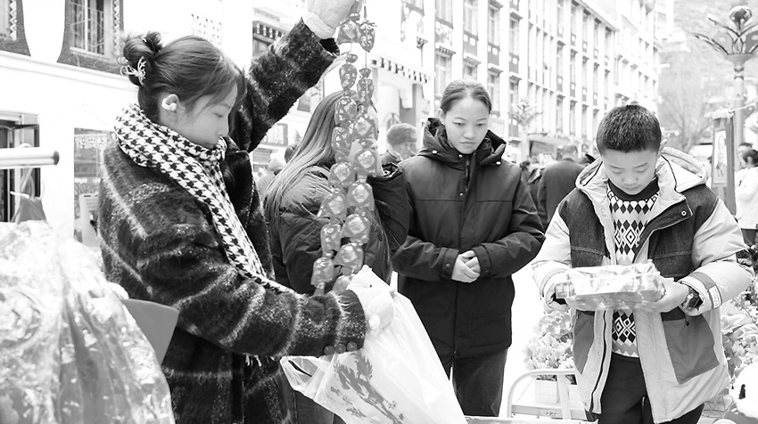 一進入臘月,年的味道越來越濃,丹巴縣家家戶戶采辦年貨的熱情也逐漸高漲,所有商店和集貿(mào)市場人頭攢動,開始熱鬧起來。人們忙著選購各種商品,迎接新年的到來。