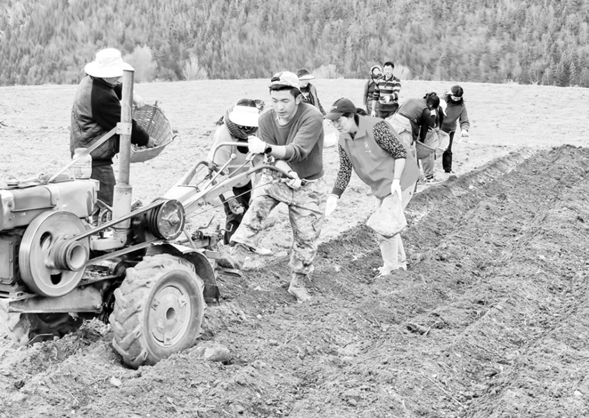 志愿者們認(rèn)真領(lǐng)會播種要領(lǐng),深入田地,依次排開,相互配合著耕地、播種、施肥。增德村監(jiān)測戶鄭呷感激地說:“太感謝鄉(xiāng)里的干部了,我們家就2人,勞動力只有我一個,以前家里的地至少要一周才能種完,這次有你們幫忙,用一天的時間就種完了?!?/span>
