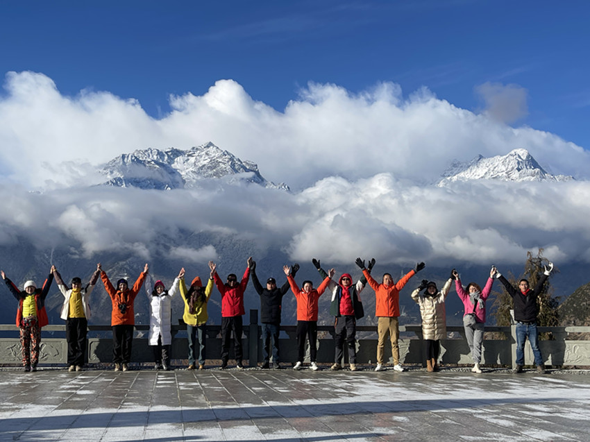 雪山觀景臺(tái)上的游客。