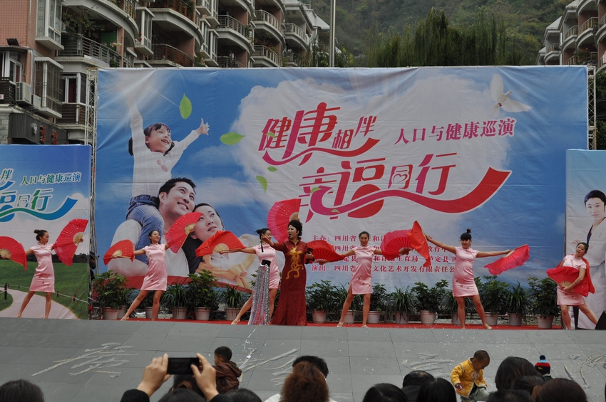 舞臺(tái)上“健康相伴•幸福同行”大型演出背景格外醒目,由省虹宇藝術(shù)團(tuán)自編自演的舞蹈《歌舞青春》、金錢板《怪哪個(gè)》、小品《你生不生》、四川清音《分級(jí)診療就是好》、雜技《烏依人》、戲曲《天府奇葩》等節(jié)目陸續(xù)登場(chǎng)。演員們通過戲曲、歌曲等形式,向廣大觀眾傳播衛(wèi)生計(jì)生新政策,臺(tái)下各縣屬醫(yī)療衛(wèi)生計(jì)生機(jī)構(gòu)醫(yī)務(wù)人員免費(fèi)開展義診活動(dòng),為廣大群眾查血壓、詢問病史、咨詢等忙個(gè)不停,群眾與演員互動(dòng)場(chǎng)面感人。演出活動(dòng)取得良好的教育效果,得到廣大群眾的熱烈歡迎。