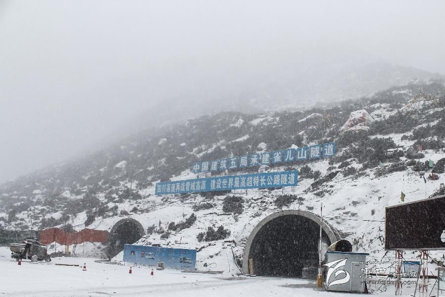 從雀兒山五道班駐地沿著崎嶇的山路下降至海拔4270米,一個(gè)浩大的工程正在緊鑼密鼓地進(jìn)行中。在這座號(hào)稱“雄鷹都飛不過(guò)的山峰”里,“世界第一高海拔隧道”——雀兒山隧道雛形已現(xiàn)。