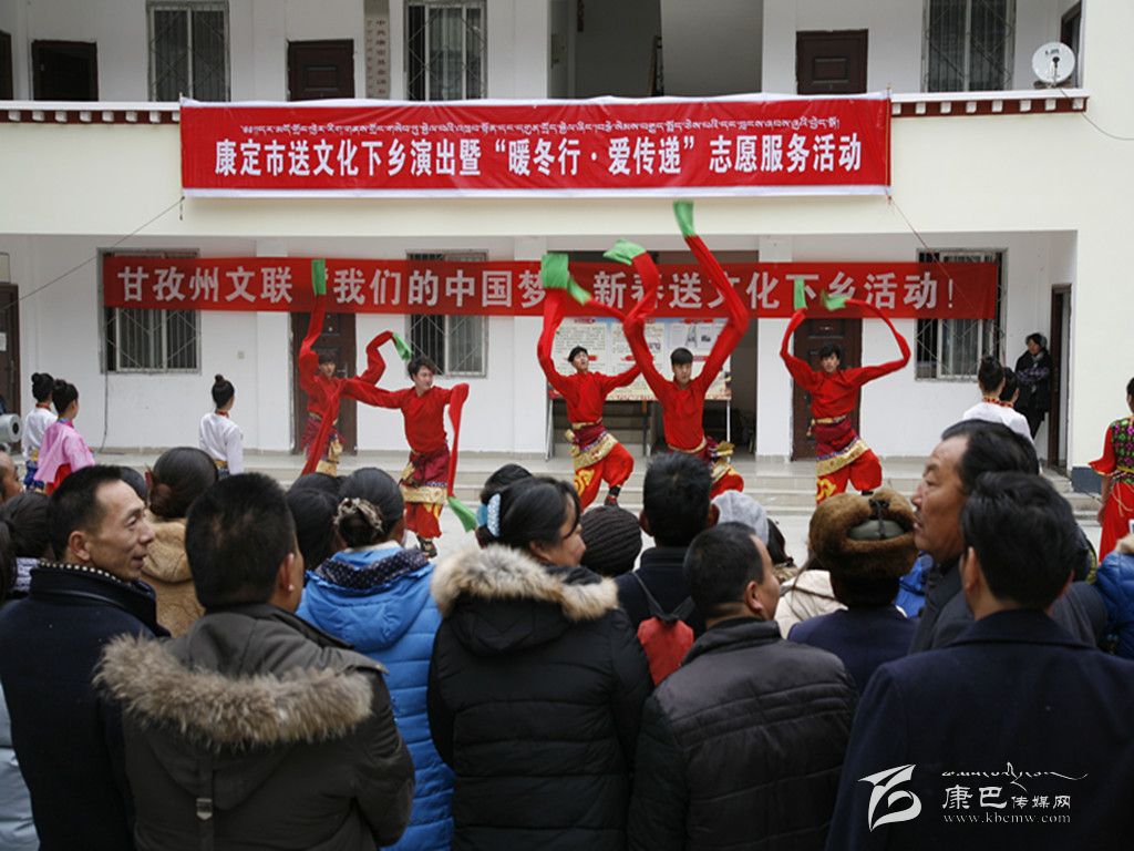 本網(wǎng)訊(本網(wǎng)記者 張兵)1月8日,由州文聯(lián)與康定市聯(lián)合主辦的以“我的中國(guó)夢(mèng)”為主題的2016送文化下鄉(xiāng)文藝演出隊(duì)迎著冬陽伴著寒風(fēng)走進(jìn)大山深處的金湯鎮(zhèn)。整臺(tái)演出節(jié)目新穎、形式多樣,獨(dú)唱、歌舞、川劇、政策宣講等節(jié)目精彩紛呈,不時(shí)博得觀眾們的熱烈掌聲,鎮(zhèn)政府成了歡樂的海洋。同時(shí),州攝影家協(xié)會(huì)、州書法家協(xié)會(huì)的專家還現(xiàn)場(chǎng)免費(fèi)拍攝全家福照片、免費(fèi)書寫春聯(lián)。“送文化下鄉(xiāng)”演出隊(duì)帶去了黨和政府對(duì)人民群眾的關(guān)懷,同時(shí)也營(yíng)造了文明、健康、歡樂、祥和的節(jié)日氣氛。當(dāng)天,“送文化下鄉(xiāng)”演出隊(duì)不辭辛苦,還在姑咱鎮(zhèn)進(jìn)行了演出。