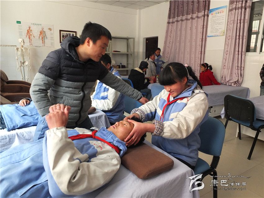在一間實訓室里,記者看到康定盲協(xié)協(xié)會主席,楊氏盲人按摩館的楊老師正在為孩子們演示按摩和足浴技能,孩子們學得很投入,老師演示完一個動作后,他們就迫不及待地組成小組相互演練起來。據(jù)老師介紹,這個班有6名學生技有所成,可以獨擋一面,他們將在學校實訓基地開張時亮相,用雙手去實現(xiàn)他們的人生價值。