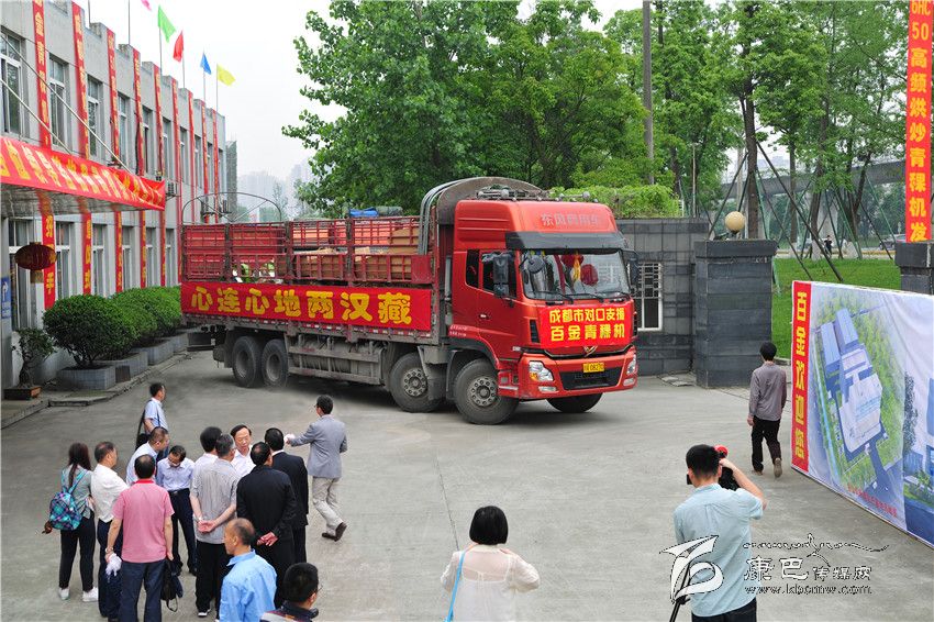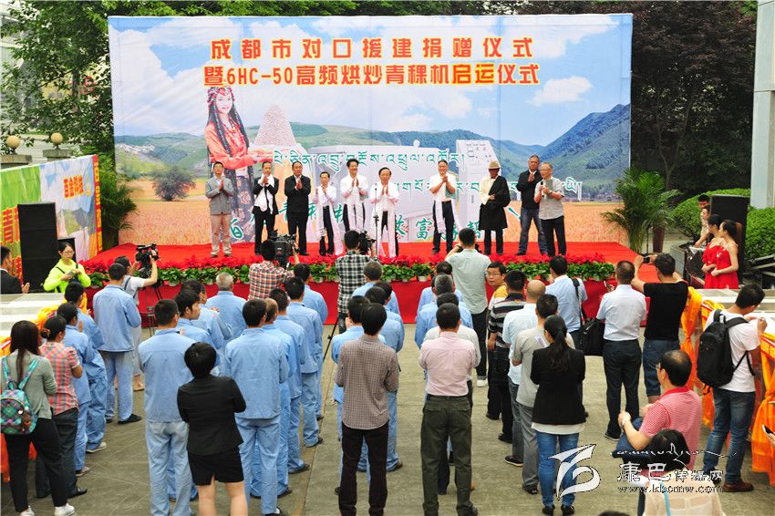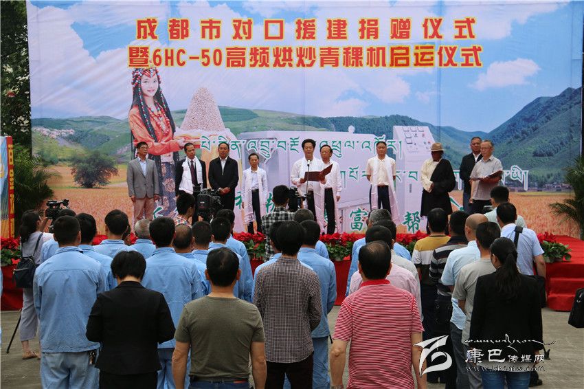 成都市委常委謝瑞武宣布50套全自動高頻青稞烘炒機(jī)啟運(yùn)甘孜州。