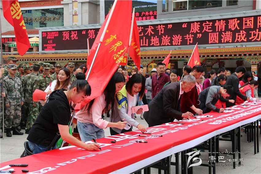 本網(wǎng)訊(記者 宋志勇 文/圖)8月5日,由州文明辦、州直工委、康定市文明辦共同舉行的康定地區(qū)迎“康巴藝術(shù)節(jié)”爭(zhēng)當(dāng)文明市民簽名暨志愿服務(wù)活動(dòng)在情歌廣場(chǎng)正式拉開(kāi)帷幕。來(lái)自康定地區(qū)社會(huì)各界的青年志愿者服務(wù)隊(duì)、巾幗志愿者服務(wù)隊(duì)、工商界志愿者服務(wù)隊(duì)、衛(wèi)生系統(tǒng)志愿者、駐康部隊(duì)志愿者服務(wù)隊(duì)、州級(jí)機(jī)關(guān)志愿者服務(wù)隊(duì)、市直機(jī)關(guān)志愿服務(wù)隊(duì)、環(huán)衛(wèi)志愿者服務(wù)隊(duì)等共計(jì)1000余人參與。