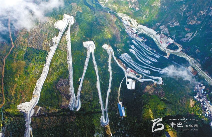 離開(kāi)大渡河大橋往康定走,另一壯觀場(chǎng)景呈現(xiàn)眼前:為了隧道施工,一條耗資5400萬(wàn)元、長(zhǎng)8.9千米的施工便道,呈“之”字形從山腳爬升到山頂,足足有二十四道拐,酷似“史迪威公路”的二十四道拐。