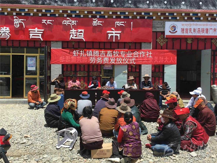 “精準(zhǔn)扶貧”貴在“精準(zhǔn)”,精確找準(zhǔn)“貧困癥結(jié)”,準(zhǔn)確“對癥下藥”;由于塔須村惡劣的自然環(huán)境制約,村民們還過著古老傳統(tǒng)的游牧生活,導(dǎo)致塔須村社會(huì)、經(jīng)濟(jì)、文化發(fā)展相對滯后,全村無集體經(jīng)濟(jì)產(chǎn)業(yè),屬于我州貧困村中的“貧中之貧”,以往傳統(tǒng)的扶貧措施猶如“灑胡椒面”,治標(biāo)不治本;“授人以魚,不如授人以漁”,為讓塔須村能建立村集體產(chǎn)業(yè),村民們能掌握一門致富手藝,州水務(wù)局結(jié)合塔須村實(shí)際,多次派遣工作組深入塔須村,了解貧困戶生活現(xiàn)狀、致富愿望,聽取村兩委干部建言,形成專題脫貧報(bào)告;鑒于牧民致富愿望強(qiáng)烈,村干部建言獻(xiàn)策,在州水務(wù)局的積極協(xié)調(diào)下,在蝦扎鎮(zhèn)黨委、政府的倡導(dǎo)下,經(jīng)石渠縣人大牽頭,通過州級各聯(lián)系單位、駐村幫扶工作組和村兩委的努力,整合各方人力、物力、財(cái)力,團(tuán)結(jié)協(xié)作,于2016年3月成立了“石渠縣蝦扎騰吉畜牧專業(yè)合作社”,并選舉出9名致富能手為騰吉專業(yè)合作社理事人選。“騰吉合作”乃飛騰吉祥之意,寓意著牧民群眾齊心協(xié)力,共奔小康。