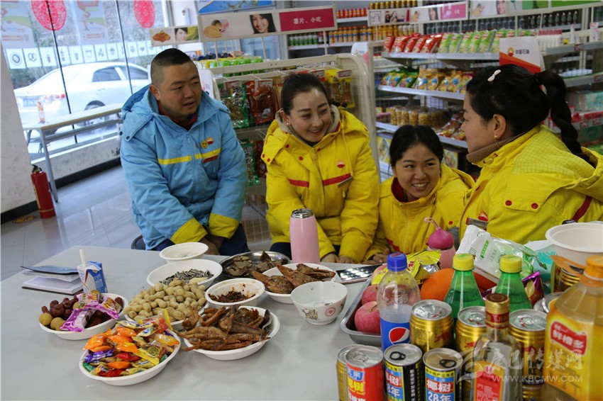 大年初一,記者看到位于康定入城口的跑馬山加油站里,過往車輛紛紛過來加油,工作人員熟練地為每一臺(tái)大小車輛加油。當(dāng)記者問他們?cè)趺礇]有回家過年時(shí),幾位年輕的女工作人員都表現(xiàn)出一臉的無奈。工作人員龍卡志瑪說:“我們加油站一年四季天天都是24小時(shí)輪流值班,全天候?yàn)檫^往車輛提供加油服務(wù),每年都不能回家過年,大家從家里帶來一些年貨,一起在這里簡(jiǎn)單地弄幾個(gè)菜吃,就算過年了。”