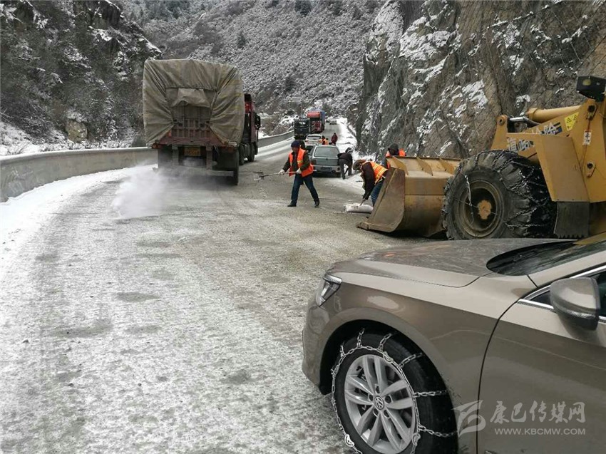 本網(wǎng)訊(賀淑明 文/圖)2月23日以來(lái),受強(qiáng)冷空氣影響, 我州境內(nèi)普降大雪,康巴高原銀裝素裹,氣溫驟降。瀘定公路分局管養(yǎng)的G318線k2823+500-k2875+000段,路面積雪,給過(guò)往駕乘人員造成較大安全隱患。