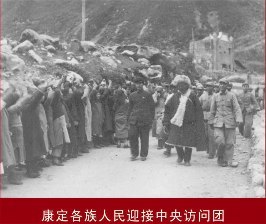 建州初期,康定各族人民迎接中央訪問(wèn)團(tuán)。