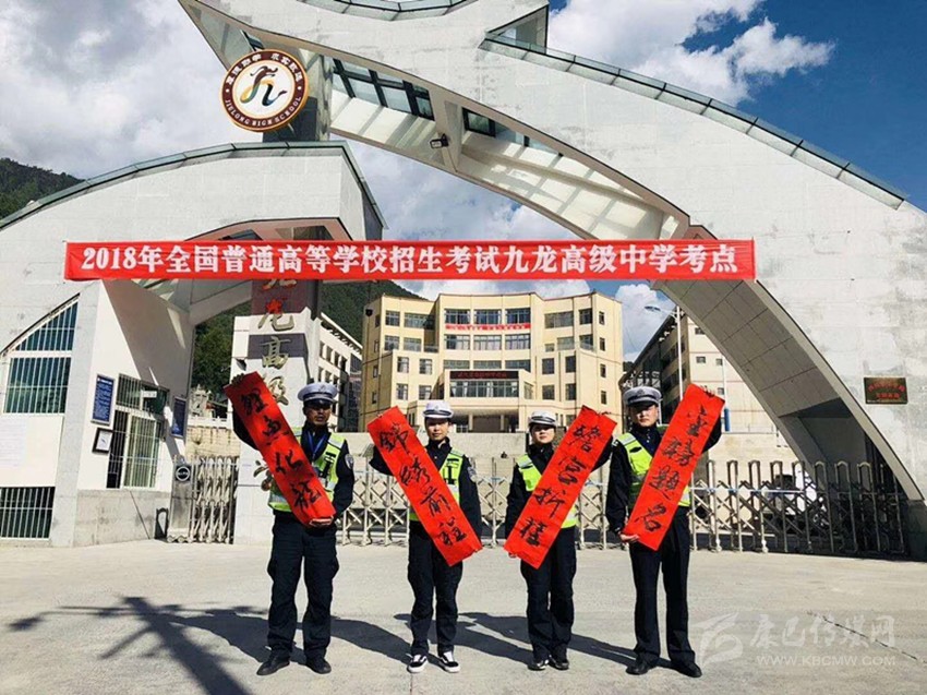 九龍縣交警拉對聯(lián)助力高考。縣委中心報道組 供稿
