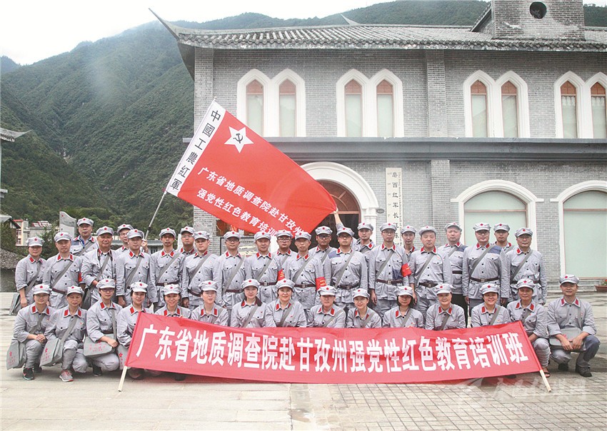 廣東地質(zhì)調(diào)查院紅色黨性教育培訓(xùn)班在磨西會議紀(jì)念館合影。