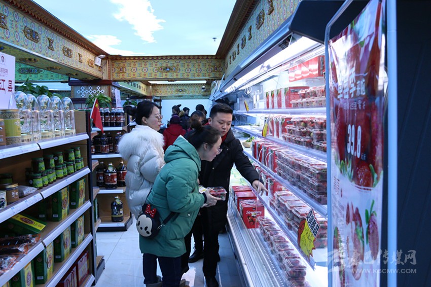 “石渠草莓、理塘番茄、九龍茶葉、康定青稞餅······”12月31日,康定市圣潔甘孜扶貧超市內(nèi)人山人海,當(dāng)天“四川扶貧”產(chǎn)品迎春年貨大集甘孜分會(huì)場(chǎng)活動(dòng)在此拉開(kāi)帷幕。來(lái)自全州18個(gè)縣(市)157家企業(yè)、合作社生產(chǎn)的723種“圣潔甘孜”優(yōu)質(zhì)農(nóng)特扶貧產(chǎn)品吸引眾多市民前來(lái)購(gòu)買。