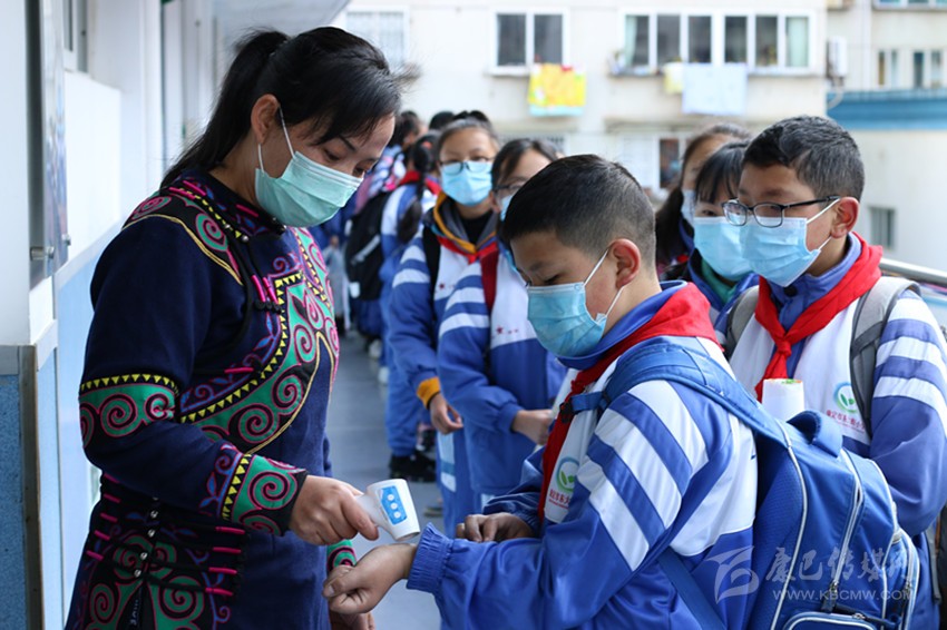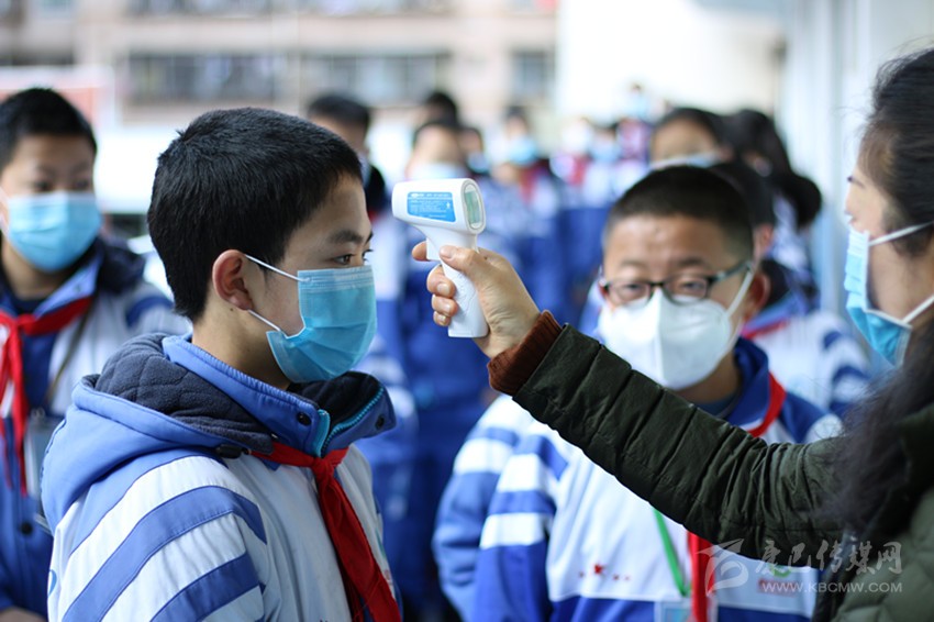 在九龍縣高級(jí)中學(xué),副校長(zhǎng)帶著輪值教師早早站在各自崗位上,負(fù)責(zé)體溫檢測(cè)的教師提前到崗,逐個(gè)對(duì)學(xué)生進(jìn)行體溫檢測(cè),并引導(dǎo)學(xué)生進(jìn)入班級(jí),如在體溫檢測(cè)中發(fā)現(xiàn)學(xué)生體溫達(dá)到及超過(guò)37.3℃,有咳嗽、胸悶等現(xiàn)象,立即進(jìn)行復(fù)測(cè),體溫仍然超過(guò)37.3℃的要將其引導(dǎo)至“應(yīng)急隔離緩沖區(qū)域”,并與學(xué)生的班主任聯(lián)系,及時(shí)告知家長(zhǎng),提示家長(zhǎng)到學(xué)校門口接學(xué)生,同時(shí)對(duì)該名學(xué)生做好手、鞋的消毒工作。家長(zhǎng)到校時(shí)嚴(yán)禁家長(zhǎng)進(jìn)入學(xué)校,由值班領(lǐng)導(dǎo)帶領(lǐng)學(xué)生(保持一米間隔)送交家長(zhǎng),做好學(xué)生離校記錄,校醫(yī)也要做好個(gè)人防護(hù),預(yù)防飛沫傳播和接觸傳播,相關(guān)廢物進(jìn)行有效消毒處理等。