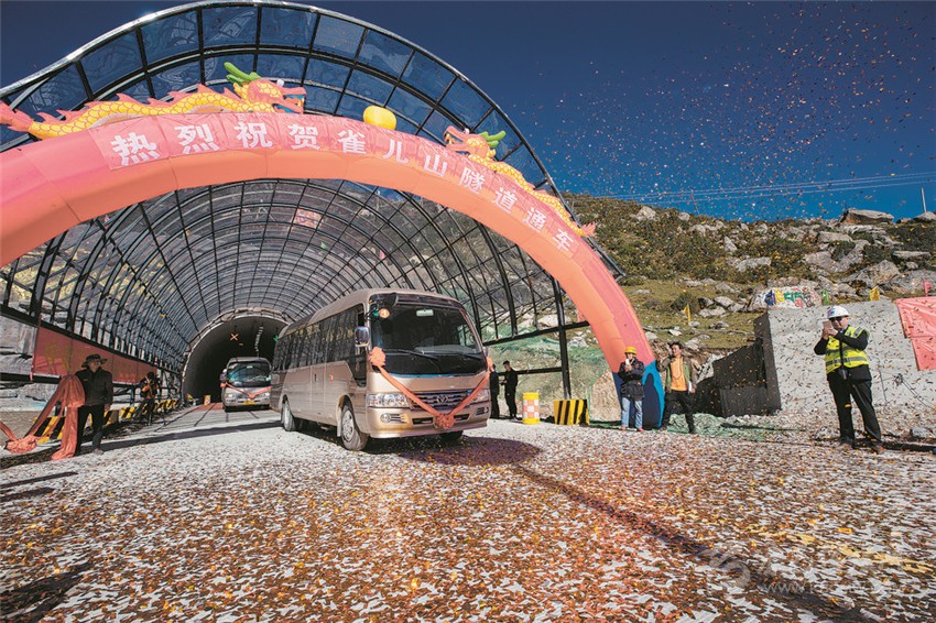 雀兒山隧道通車典禮現(xiàn)場(chǎng)。