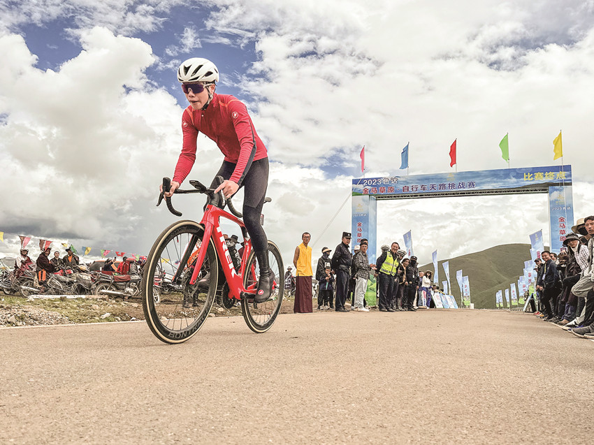 2023年8月11日,作為“福地色達·金馬之邀”草原游牧文化遺產(chǎn)體驗季系列活動之一的金馬草原自行車天路挑戰(zhàn)賽在格薩爾文化藝術(shù)中心鳴槍開賽。100多名來自全國各地的自行車專業(yè)運動員及自行車愛好者齊聚福地色達,共赴一場別開生面的體育盛宴。 一位參賽選手激動地說:“我是從湖北武漢過來的,第一次參加海拔這么高的比賽,感覺很好、很棒。一路風景超美,美呆了!如果還有這樣的比賽,我一定會再來的!”