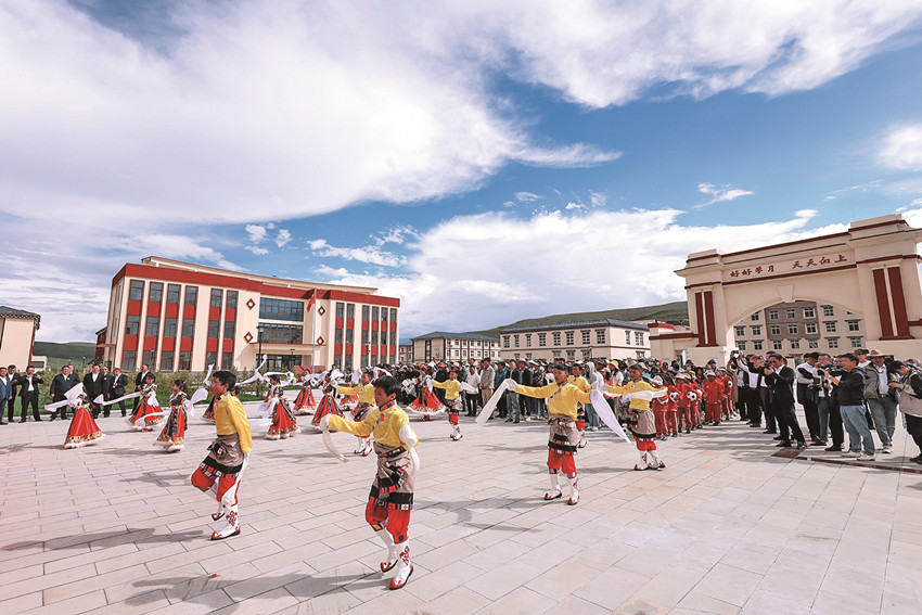 9月12日,走進色達縣椒江希望學校,寬闊的操場、彩色的跑道、規(guī)范的球場,生龍活虎的學生們正進行體育活動。
